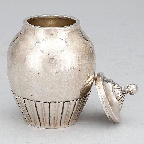 Georg Jensen Sterling Silver Tea Caddy in Cosmos from 1921 No 45. Measures 12cm high and is in good condition.