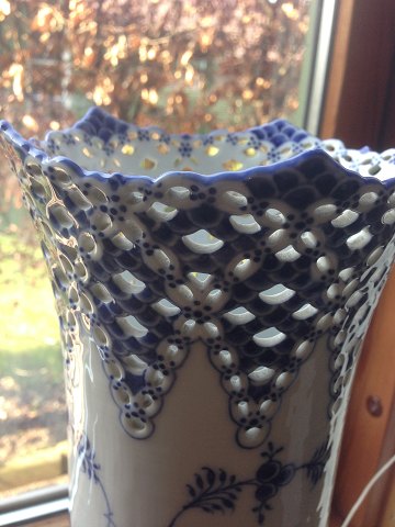 Royal Copenhagen Helblonde Musselmalet stor Vase No 1166. Måler 37,5cm og er i god stand, udover den har en hårrevne, se billede. Vi har en der er perfekt i en anden listing. Er fra pre 1923.