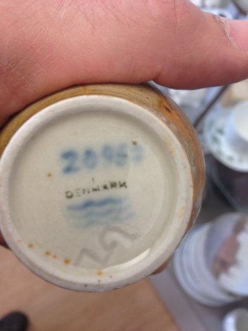 Royal Copenhagen Miniature Stentøjsvase af Nils Thorsson No 20957 med fisk. Måler 7cm og er i perfekt stand.