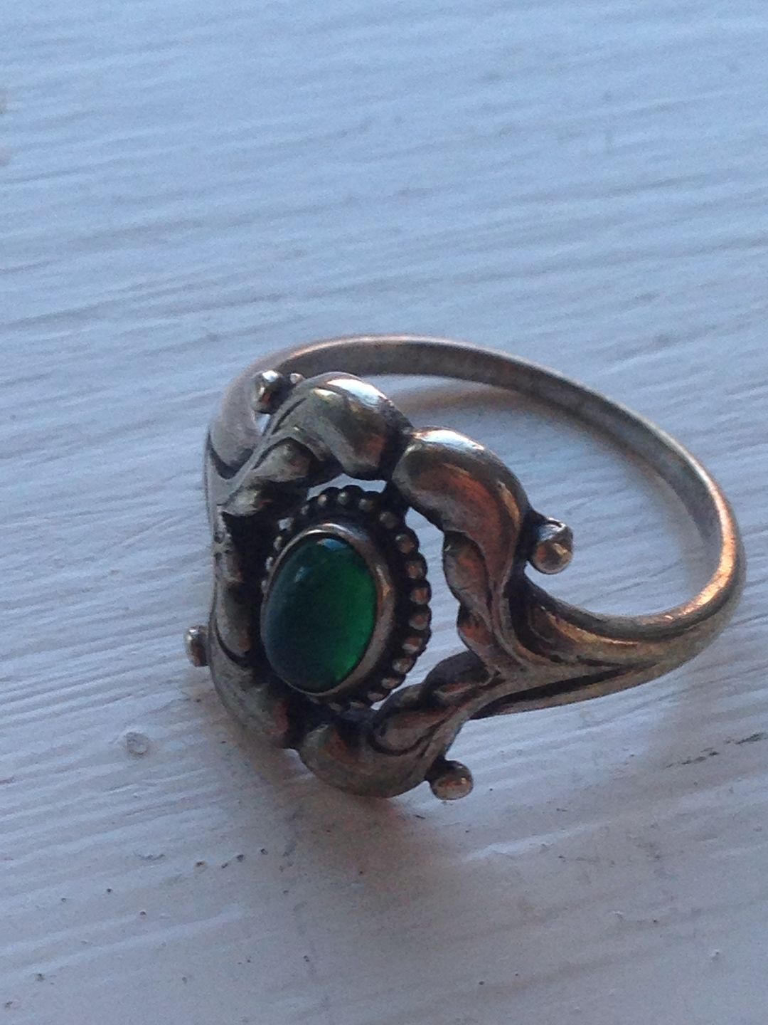 Georg Jensen Sterling Sølv Ring No 30 med Grøn sten. Ring størrelse er 56. Er fra 1933-1944.
