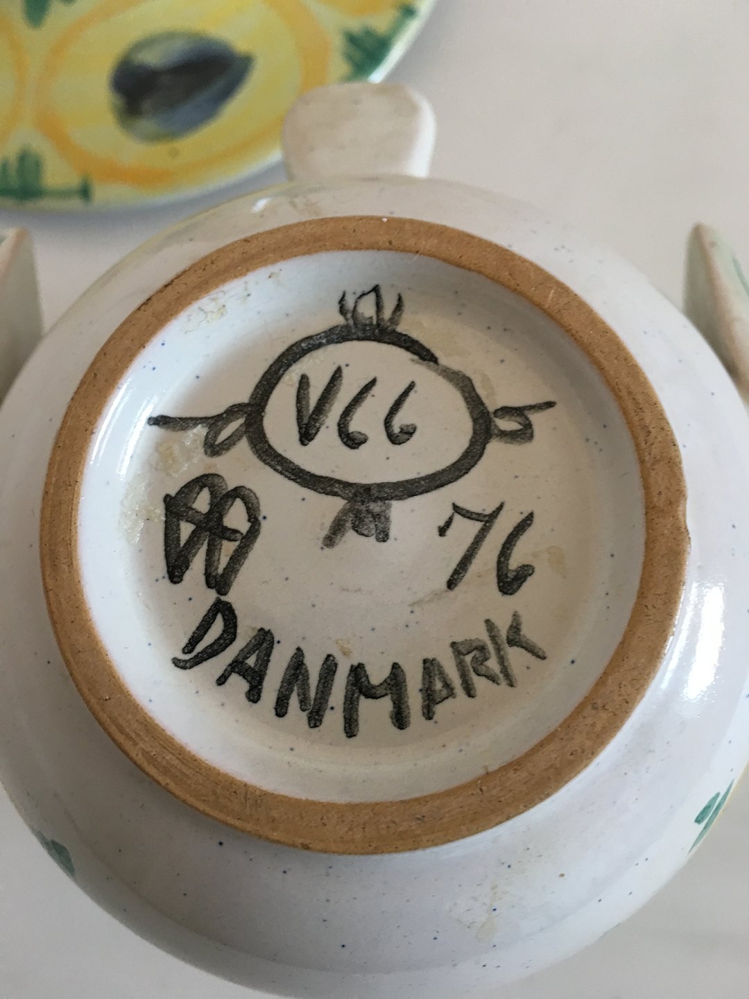 Bjørn Wiinblad Vase med låg V66 fra 1976. Måler 18cm og er i god stand, men har afslag ved bunden af vase.