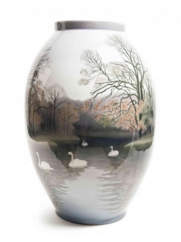 Royal Copenhagen Art Nouveau Unika Vase af Vilhelm Theodor Fischer med Svaner. Måler 48cm høj og er i perfekt stand.