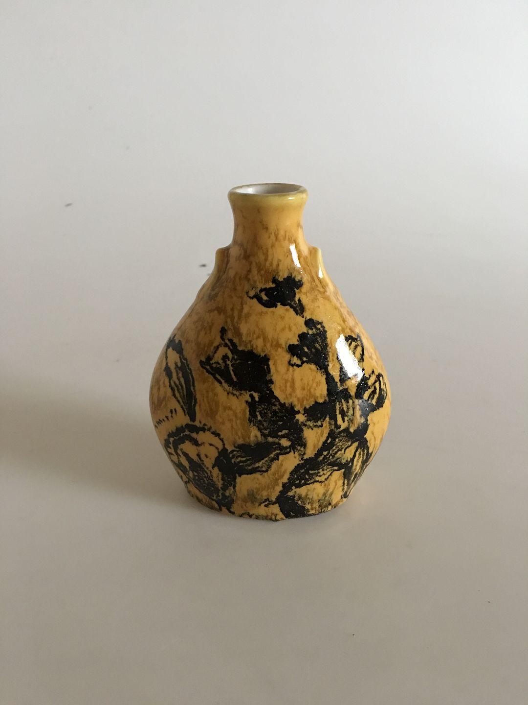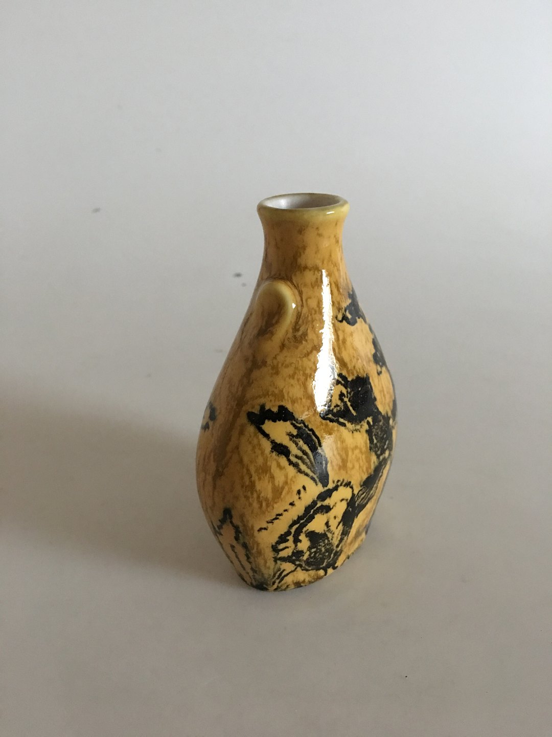 Bing og Grøndahl Unika Vase af Cathinka Olsen. Gul og sort glasur. Måler 11cm, har afslag ved hals.