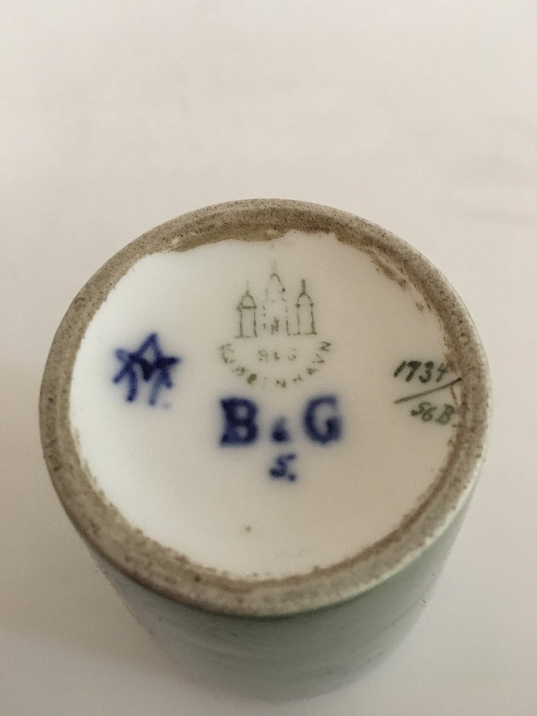 Bing og Grøndahl Art Nouveau Bæger No 1734/56B. Måler 12,4cm og er i god stand.