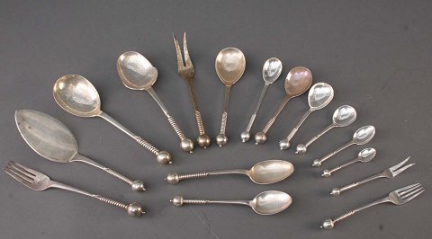 Georg Gleerup. Silver flatware, hammered and with silver thread, ball.