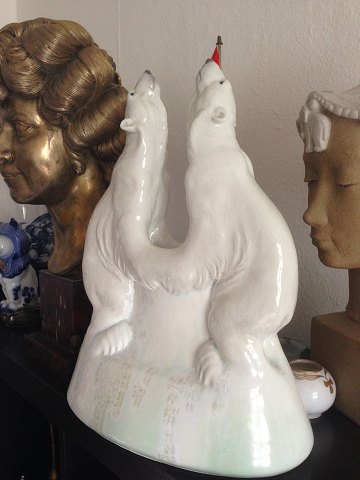 Royal Copenhagen Art Nouveau Krystal Glasur Vase med two isbjørne af Valdemar Engelhardt H81. Måler 42cm høj og er i perfekt stand. Der findes kun denne ene vase.