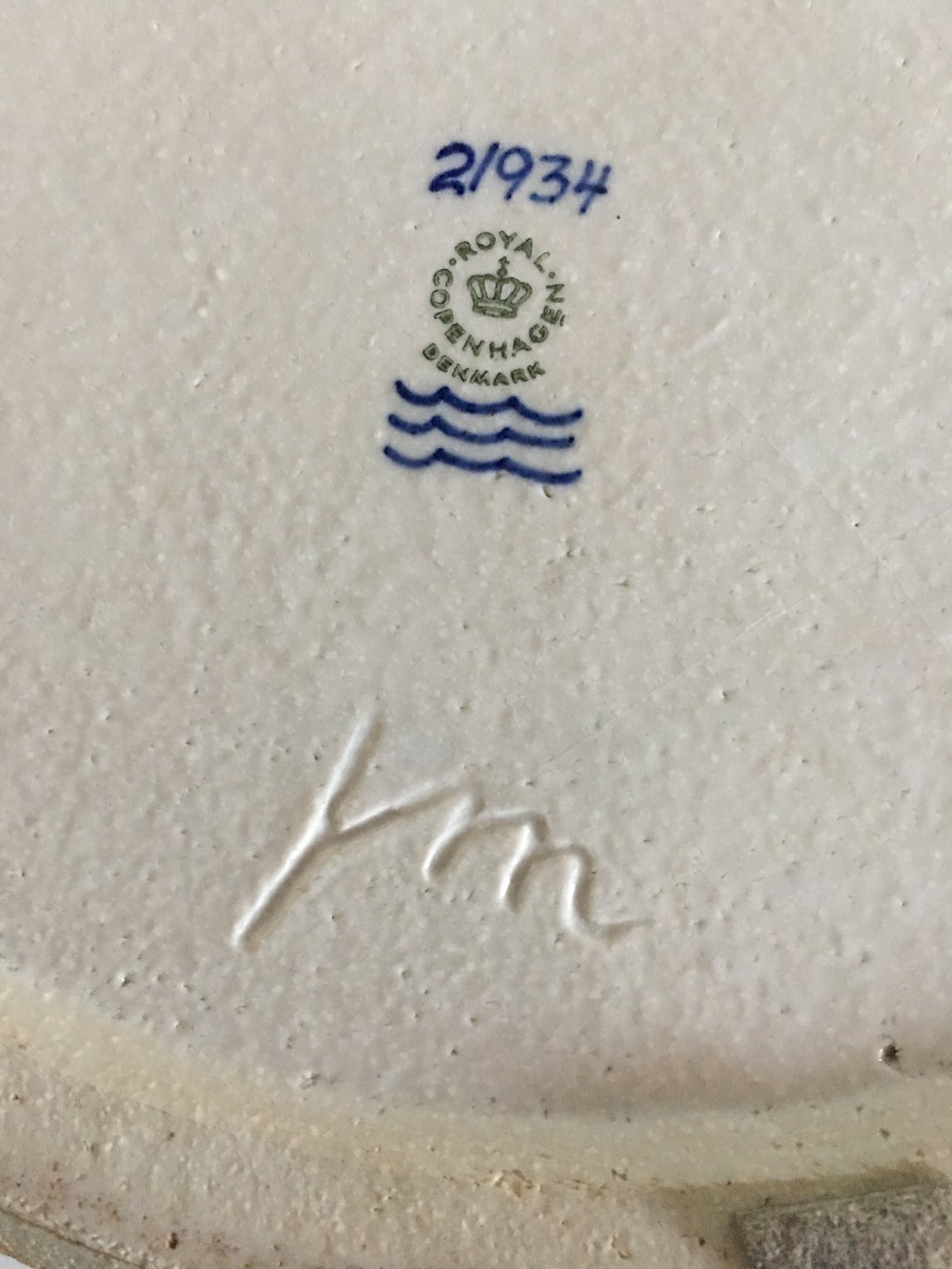 Royal Copenhagen Jørgen Mogensen Stentøjsskål med Fugl No 21934. Måler 30,7cm og er i perfekt stand.