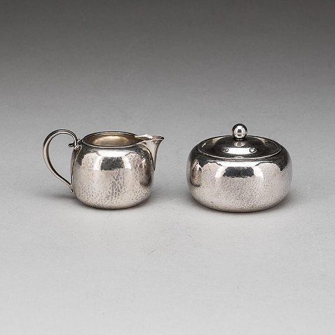 Georg Jensen Sterling Silver Sugar and Creamer No 847 from 1933-1944. Measures 5,5cm and 6,5cm.
