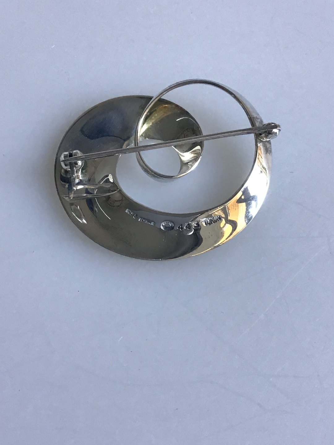 Georg Jensen Sterling Silver Torun Brooch No. 443. Measures 3,7cm x 4,2 cm (1.45 inch x 1.65 inch) Weight 8.8 gr/ 0.32 oz