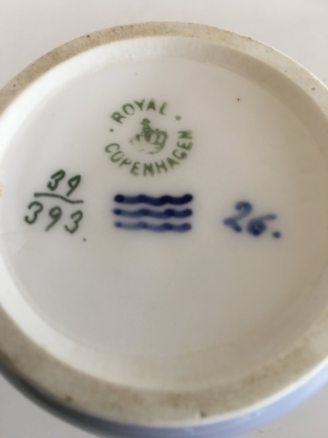 Royal Copenhagen Art Nouveau Vase med 3 sommerfugle No 39/393. Måler 6,5cm x 7,5cm.