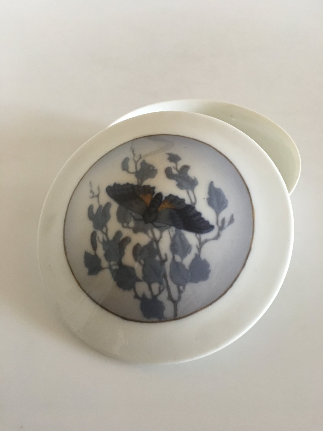 Royal Copenhagen Art Nouveau lågskål med sommerfugl No 1885/2. Måler 10 cm dia.