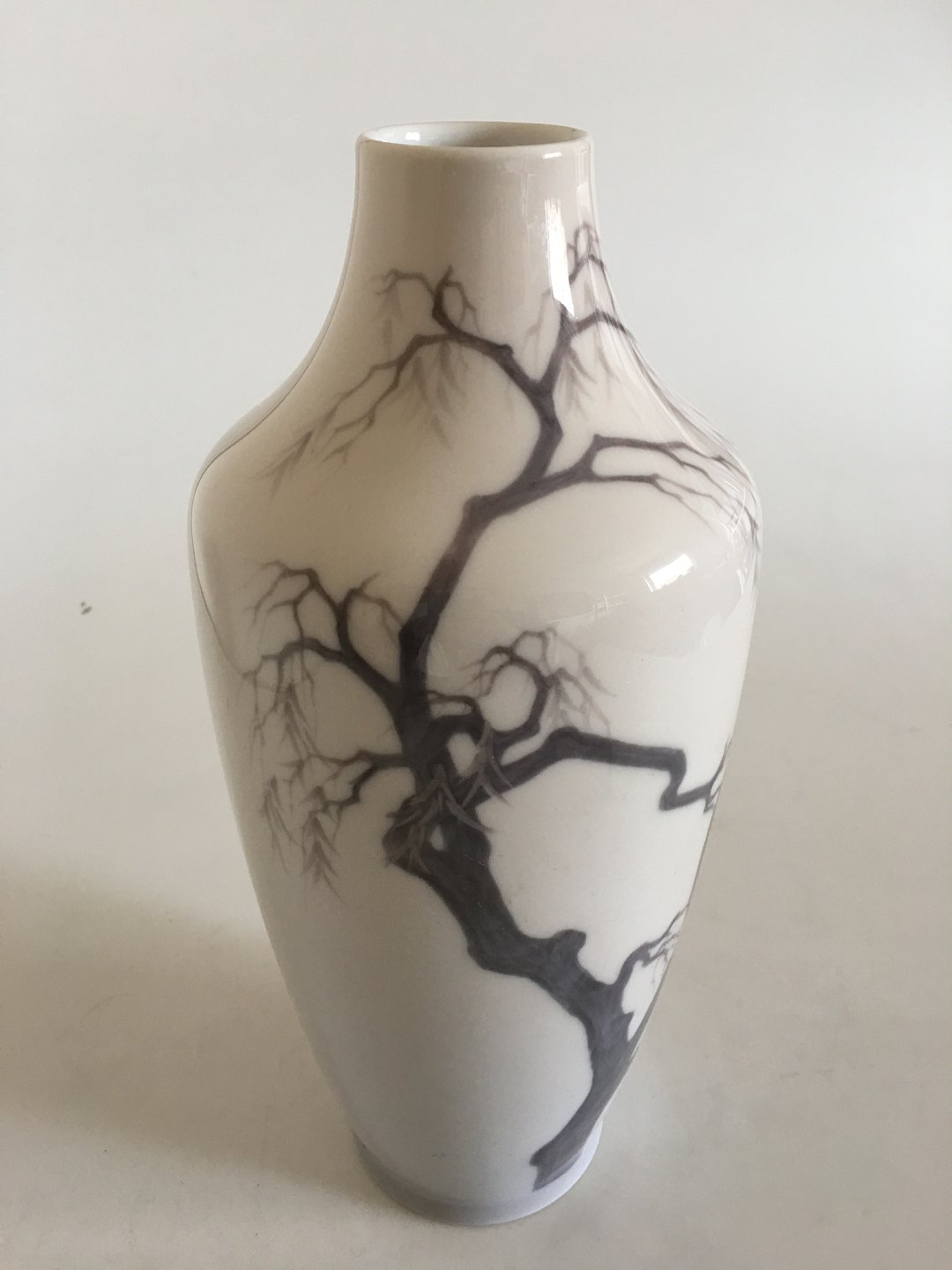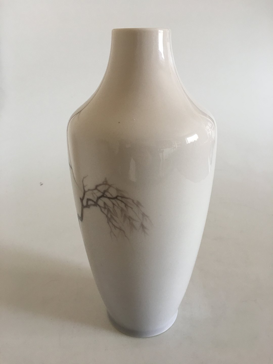Royal Copenhagen Art Nouveau vase med fiskehejrer No 1669/231. Måler 28cm og er i perfekt stand. I sjælden lyserød grundfarve.