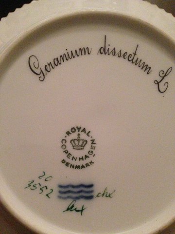 Royal Copenhagen Flora Danica Sidetallerken No 3552. Måler 14,5cm og er i perfekt stand. Latinsk navn: "Geranium dissectum L."