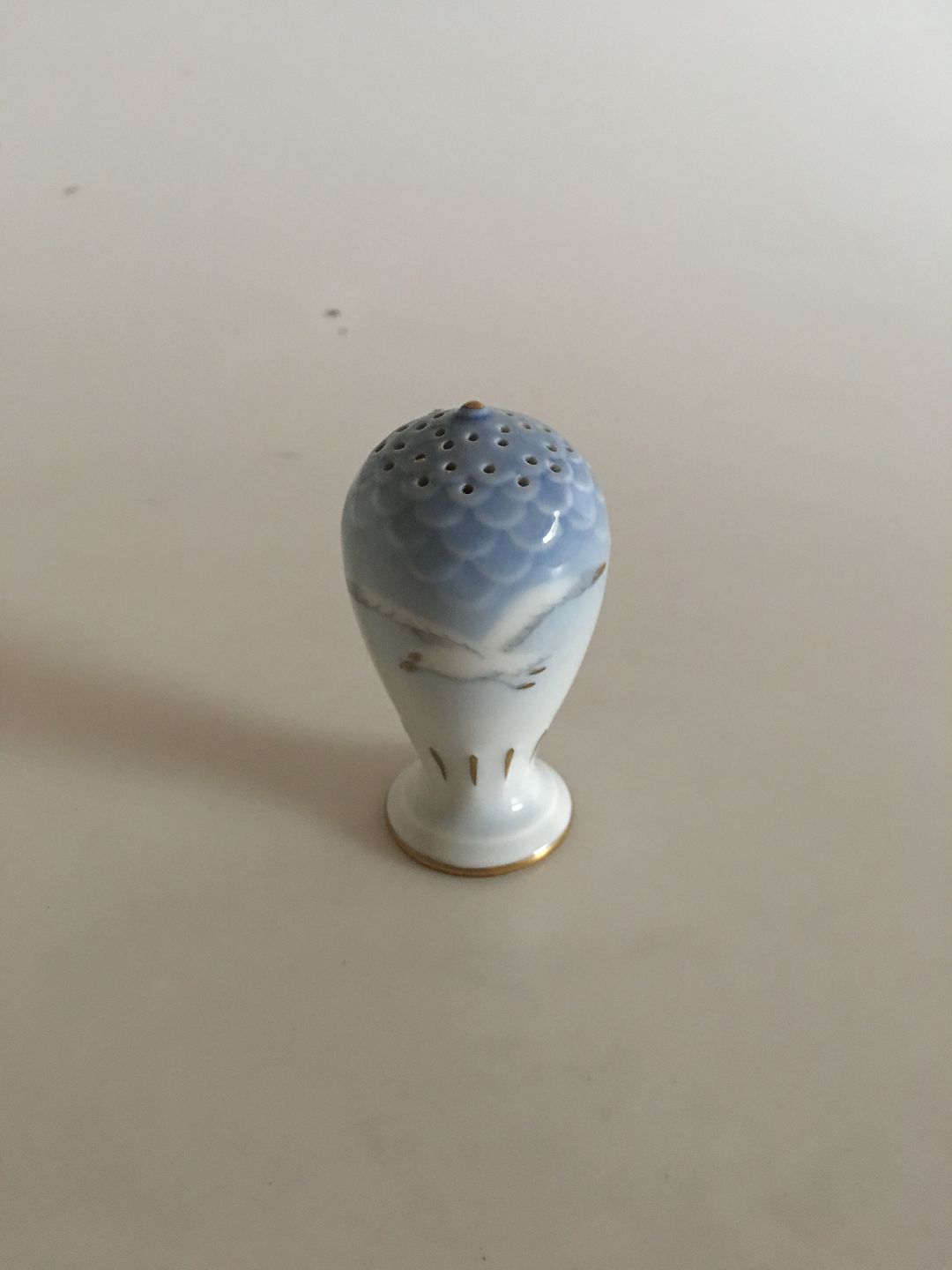 Bing & Grøndahl Måge med guld Salt/pepper bøsse No 52B. Måler 7 cm