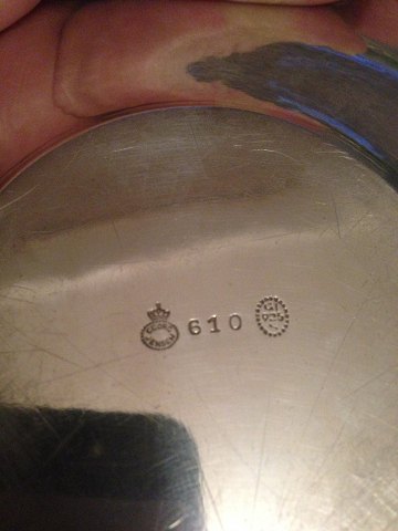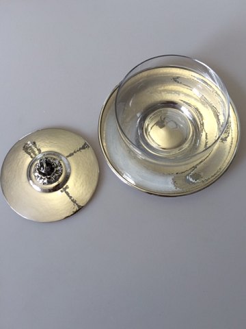 Georg Jensen Sterling Silver and Glass Caviar Bowl with lid and tray No 610. Tray measures 15,8cm, lid 11cm and 10,5cm high.