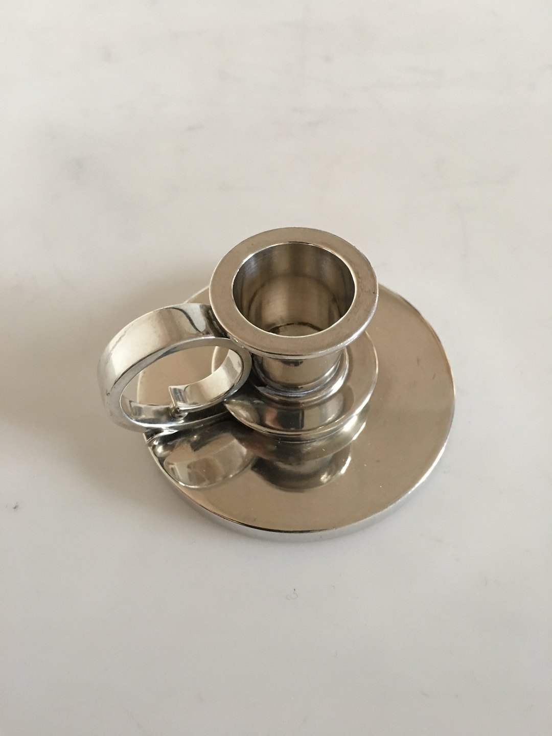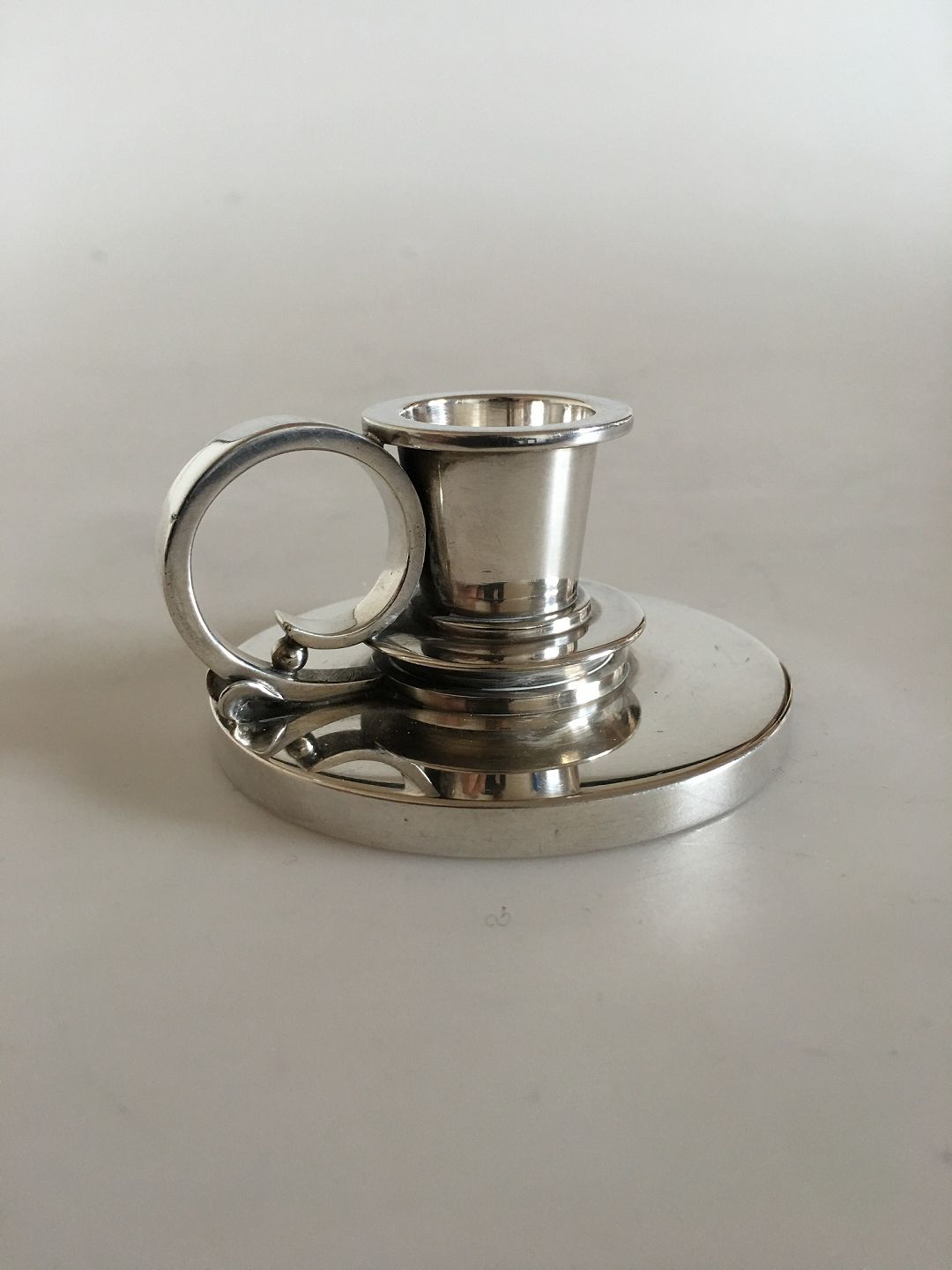 Georg Jensen Sterling Silver Chamber Candle stick No 668A. Measures 3,6cm high and 6,9cm dia.