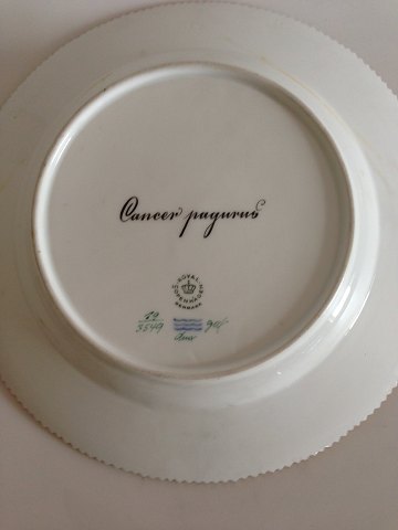 Royal Copenhagen Flora Danica Fisketallerken No 19/3549 med krabbe. Måler 25cm. Latinsk navn: "Cancer Pagurus". Perfekt stand.