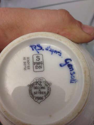 Sevres Art Deco Vase i porcelæn af Gensoli med fugle motiv fra 1926. Måler 12,4cm