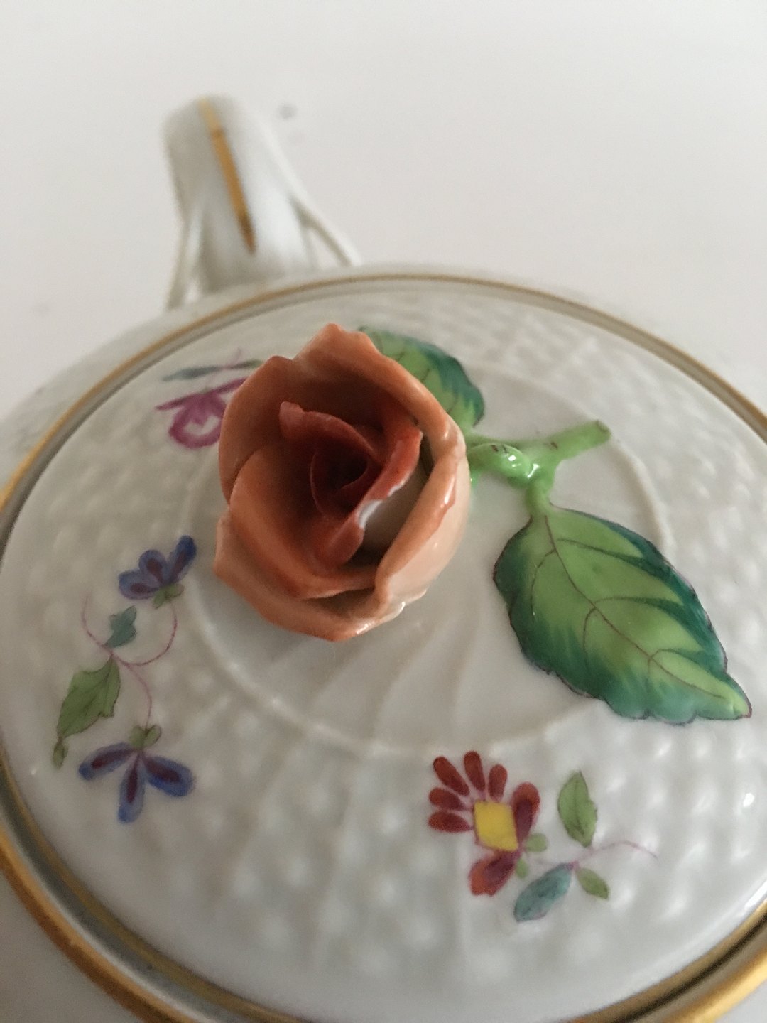 Herend Ungarn Thekande, håndmalet blomster. Har hårrevne og lille afslag. Måler 27cm.