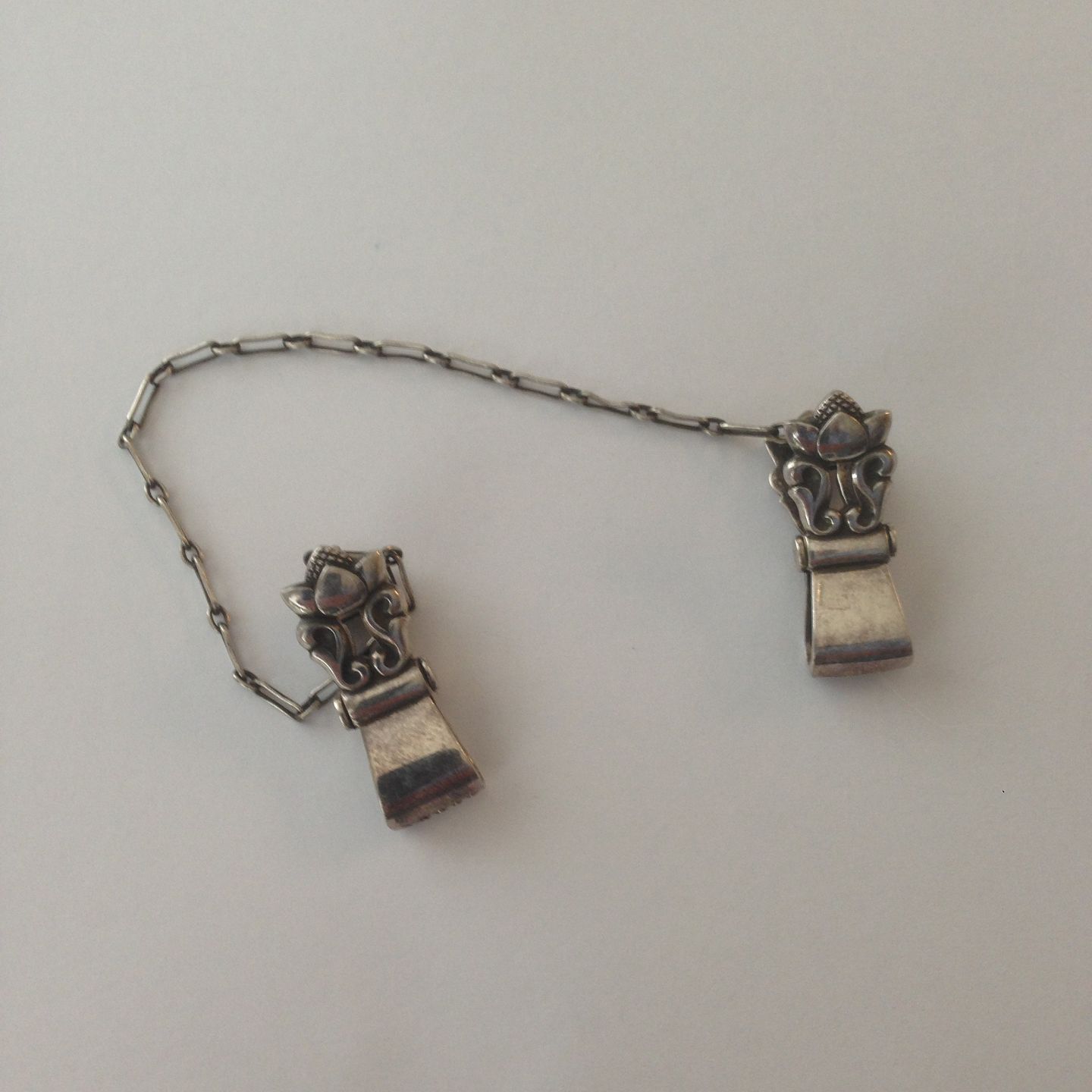 Georg Jensen Sterling Sølv Konge Servietklemme No 192. Måler 20,6 cm. Design Johan Rohde.