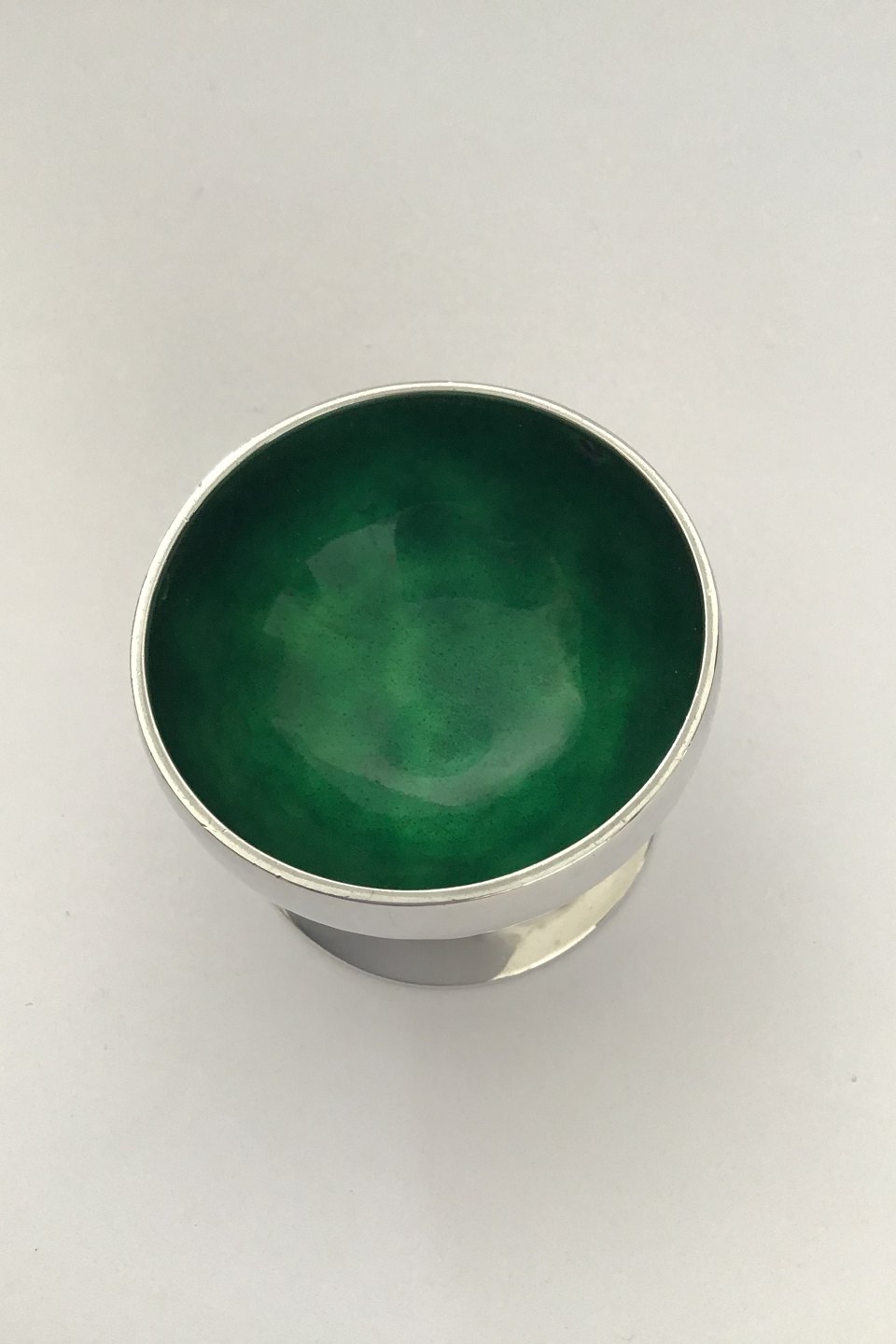 Georg Jensen Magnolia Sterling Sølv Saltkar No 2A. (Grøn) Måler H 3.5 cm Diam 5 cm