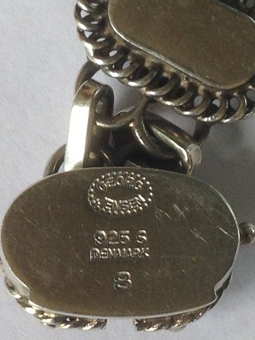 Georg Jensen Sterling Sølv Armbånd med 18 cabochonslebne karneoler No 8. Vejer 28g