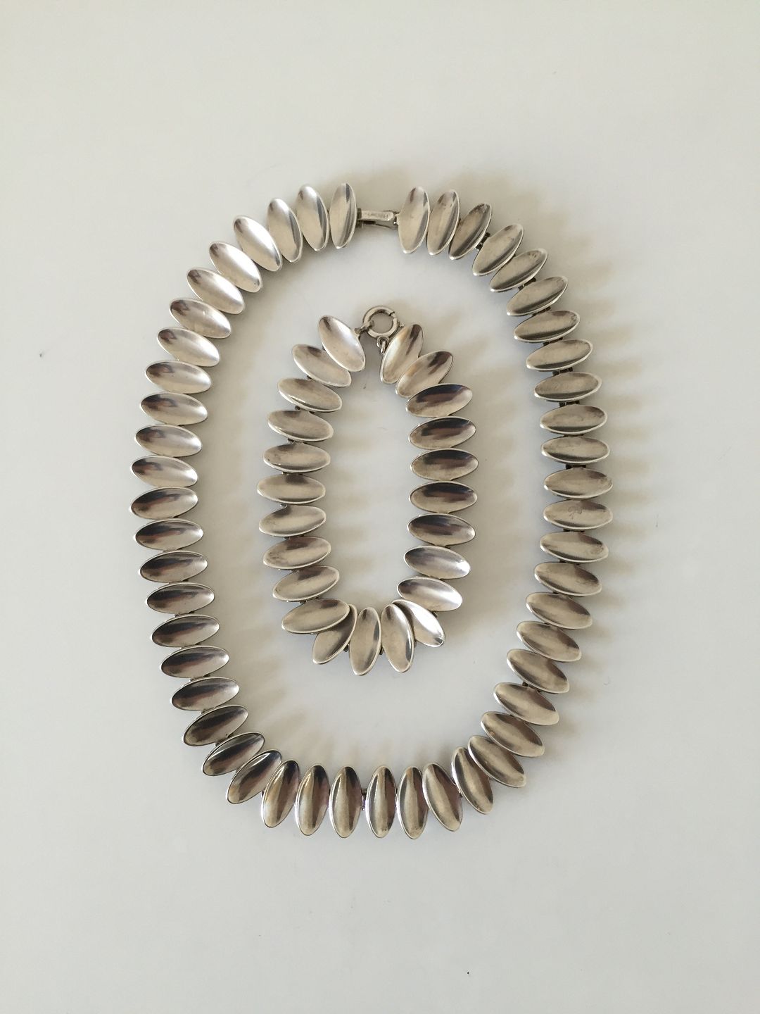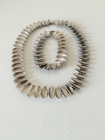Anton Michelsen Sterling sølv Halskæde og Armbånd designet i Nanna Ditzel Stil. Måler 19 cm og 38 cm. Armbånd vejer 22,7 g, halskæde vejer 50,3 g