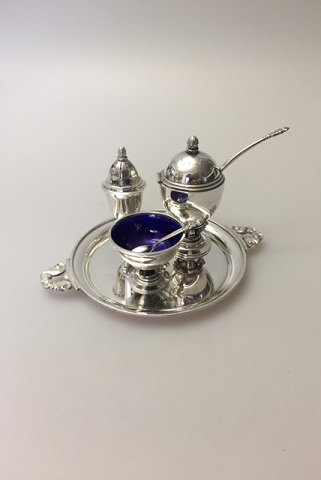 Georg Jensen Acorn Sterling Silver Cruet set No 741. Mustard, Salt, Pepper and Tray. All in perfect condition.