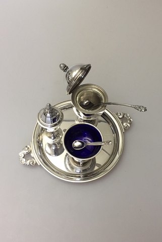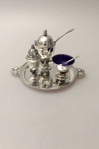 Georg Jensen Konge Sterling Sølv Condiment Sæt No 741. Med Sennep, salt, peber og bakke. Alt i god stand.