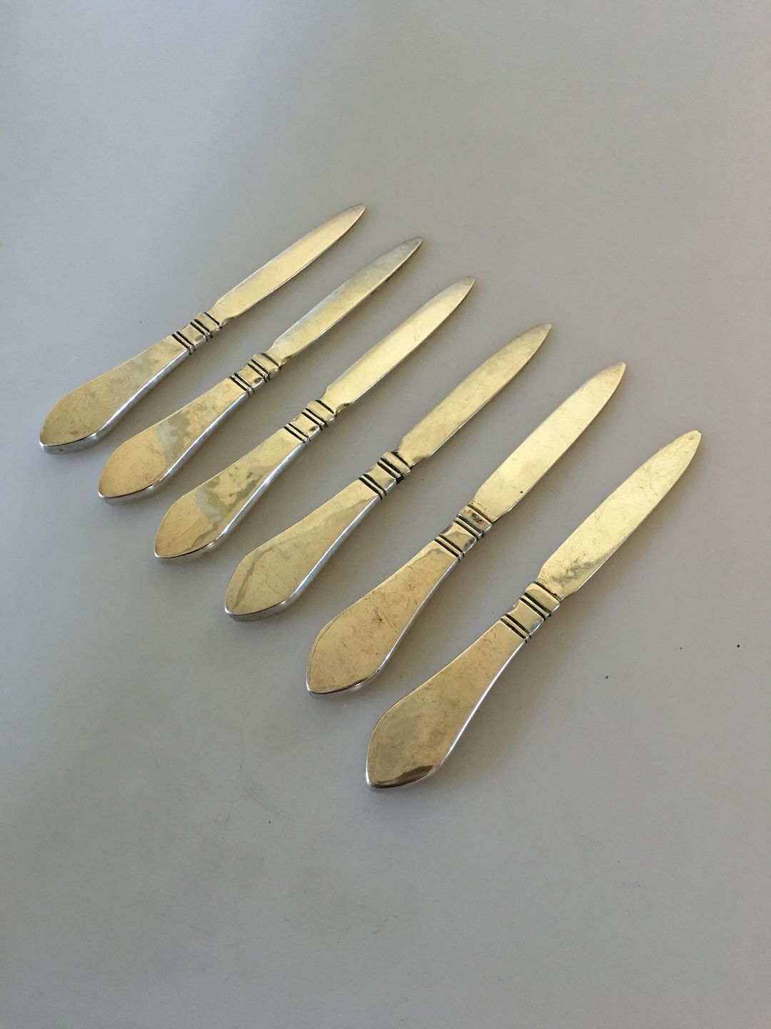 6 x Georg Jensen Continental Sølv 830 S Frugtknive No 12 med meget tidlige stempler, fra omkring tiden de blev designet. Måler 15cm. De har brugsspor.