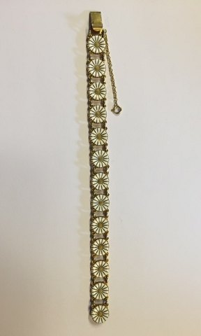 Bernhard Hertz Margueritte armbånd i fogyldt sterling sølv med emalje. Måler 18 cm. Vejer 23 gram