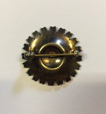 Georg Jensen broche forgyldt i sterling sølv med emalje. Diameter måler 2.5cm. Vejer 10g