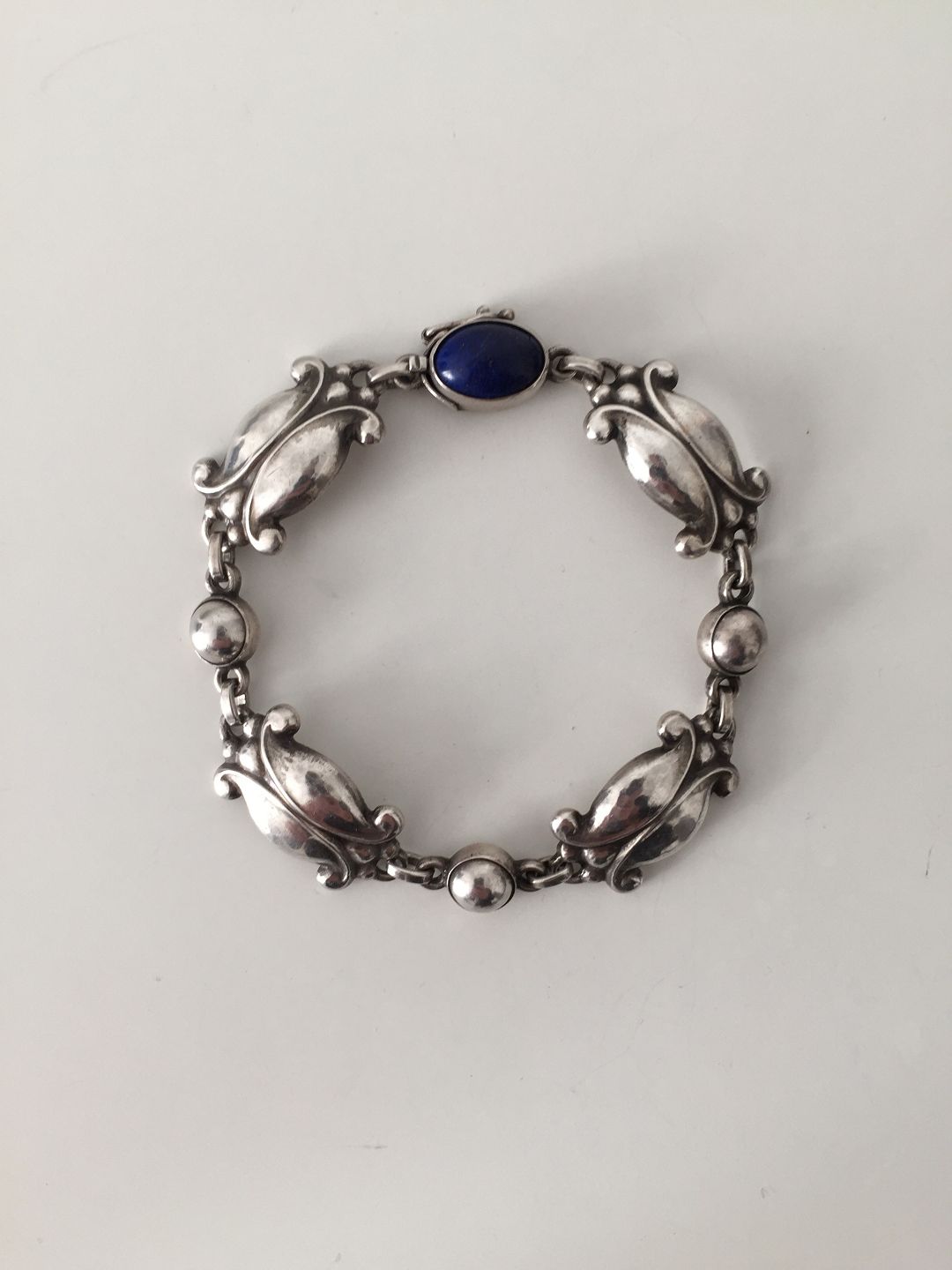 Georg Jensen Sterling Sølv Armbånd med Lapis Lazuli No 11. Måler 18,4 cm / 7 1/4 in. Med ældre stempler. Vejer 18 g