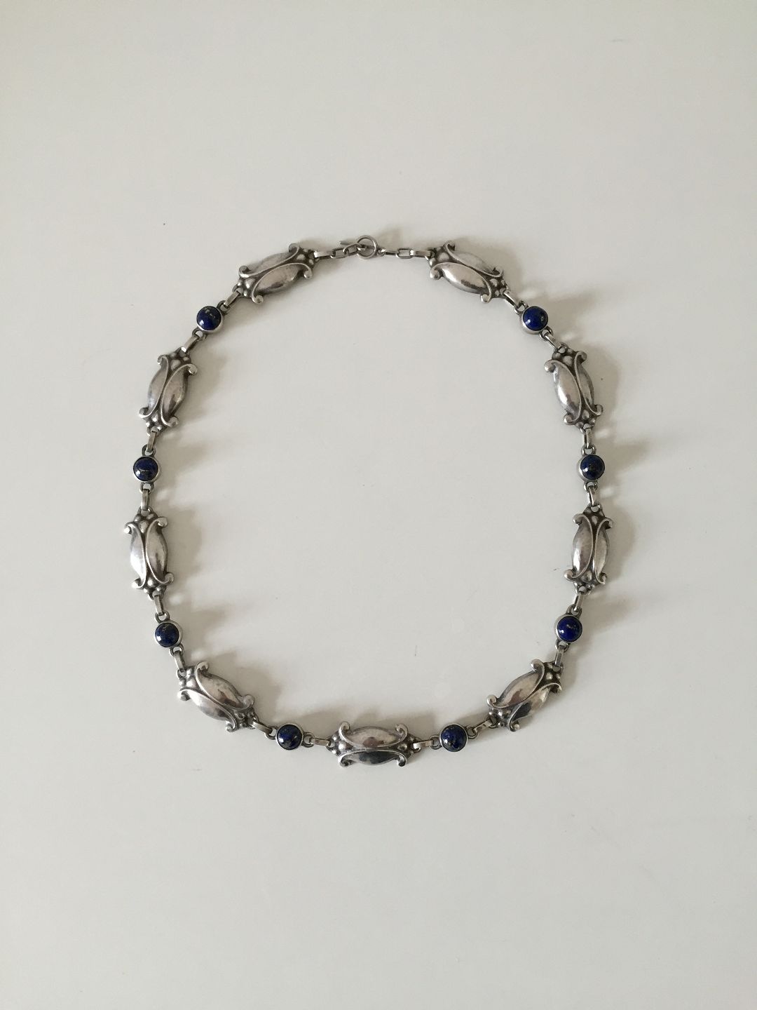 Georg Jensen Sterling Sølv Halskæde med Lapis Lazuli No 15. Måler 44,5 cm. Stempler fra 1933-1944. Vejer 34 g