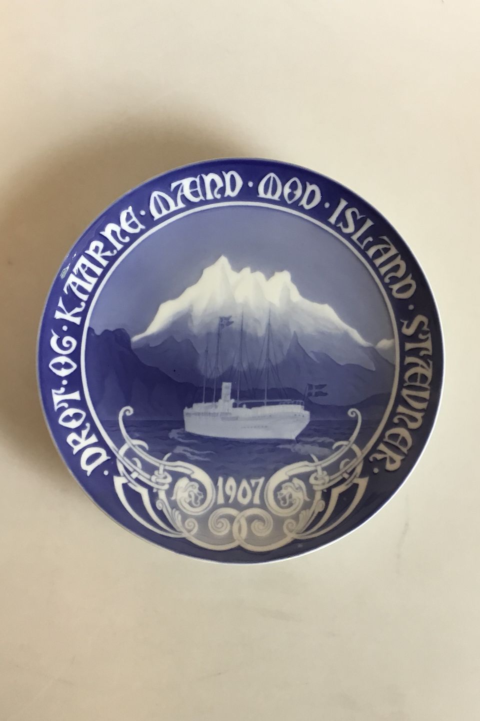 Bing & Grøndahl Mindeplatte fra 1907 BG-CM24. Kongeskibet ved Islands turen i 1907. Måler 23 cm