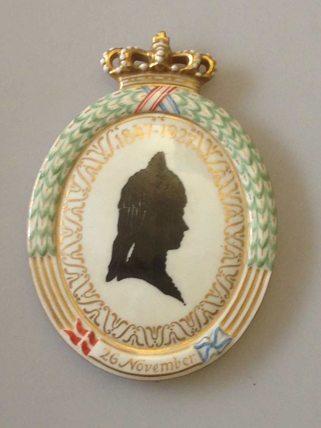 Royal Copenhagen Flora Danica Silhuet Platte Dagmar af Rusland No RC-S11. Måler 10,2 cm x 7,6 cm