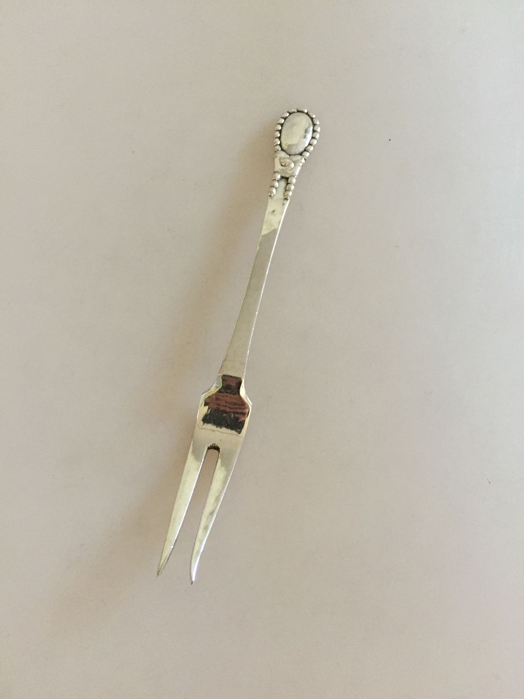 Evald Nielsen No 13 Silver Cold meat fork from 1922. Measures 15,5 cm (6 7/64"). Have a monogram on the back.