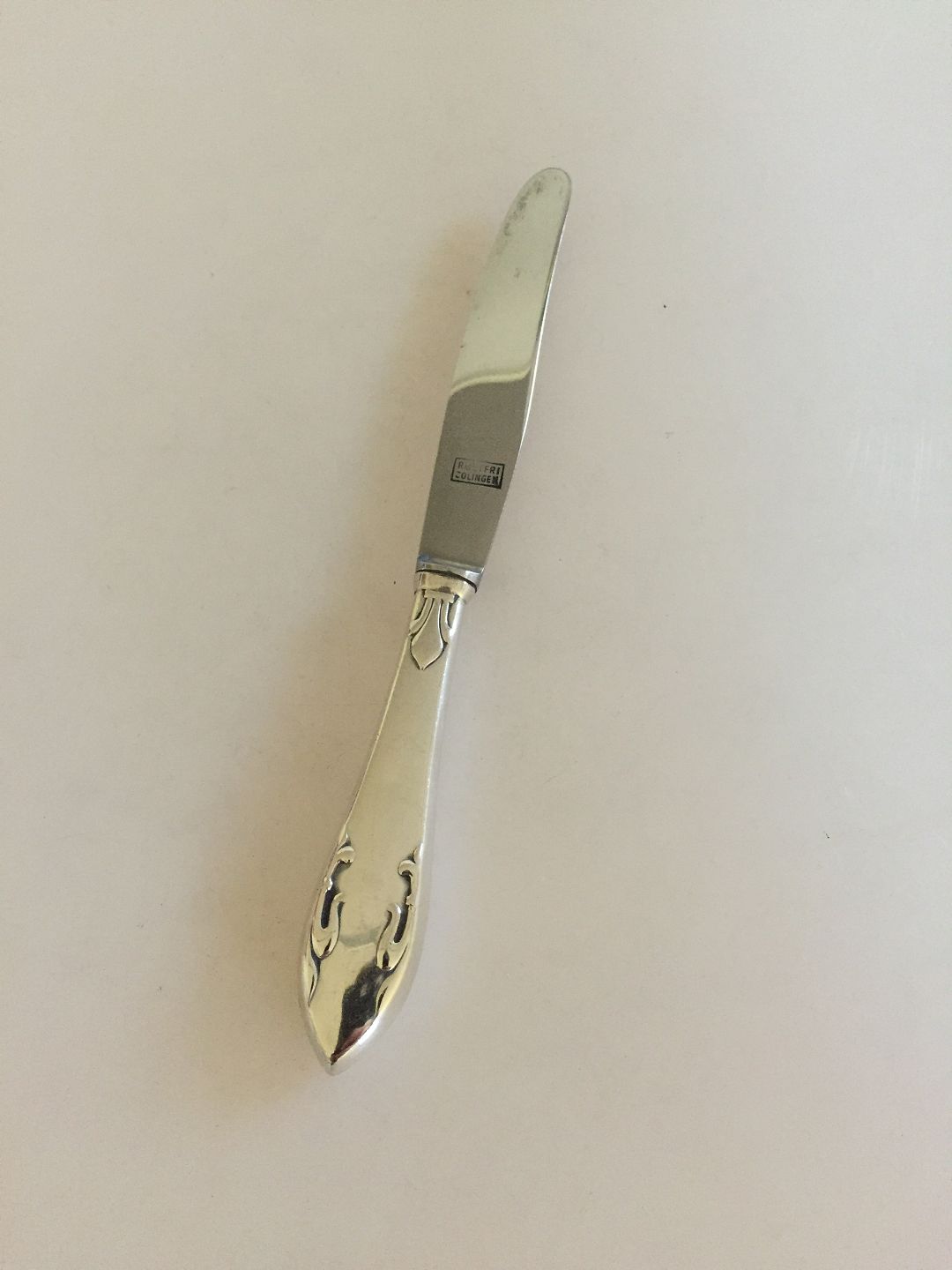 Delt Lilje Frugt/Barnekniv i Sølv Frigast. Måler 17 cm.