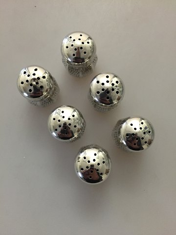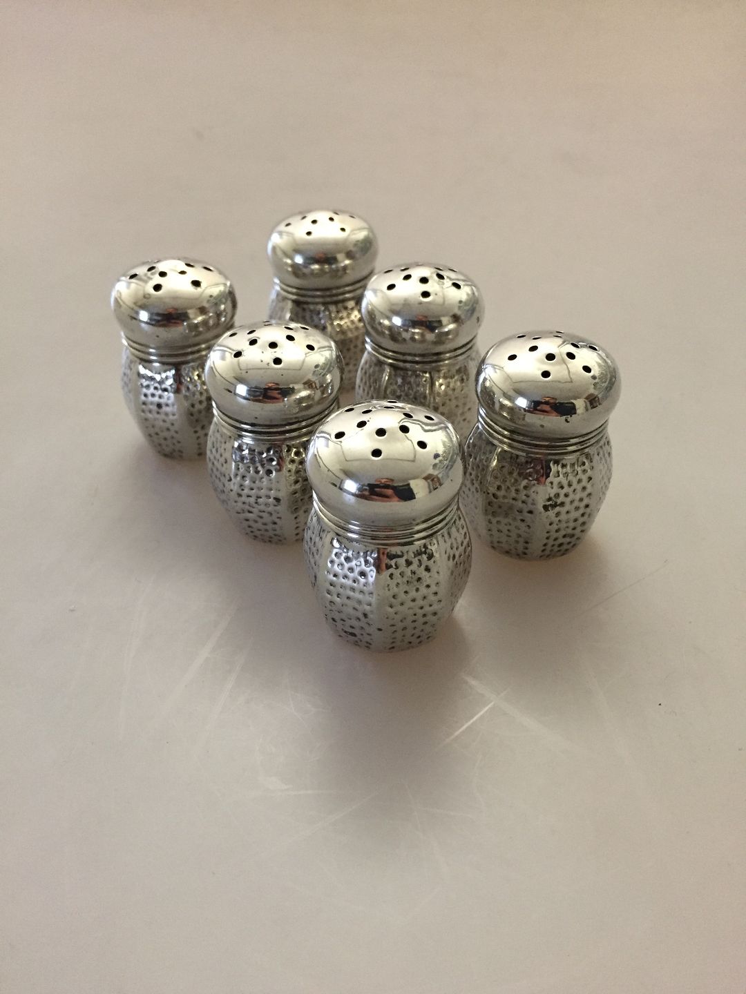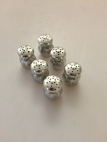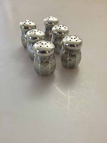 Set of 6 salt/pepper shakers American Sterling Silver. Measures 3.5 cm tall (1 3/8") and 2 cm diameter (0 25/32").