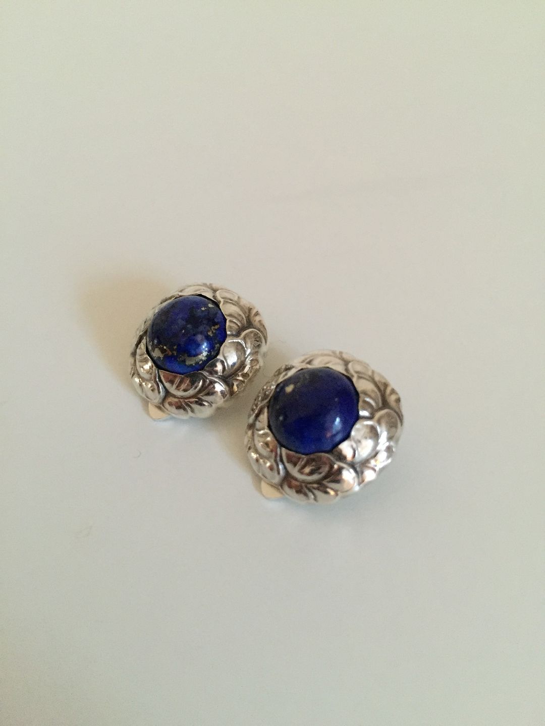 Georg Jensen Sterling Sølv Øreclips No 74 med Lapis Lazuli.