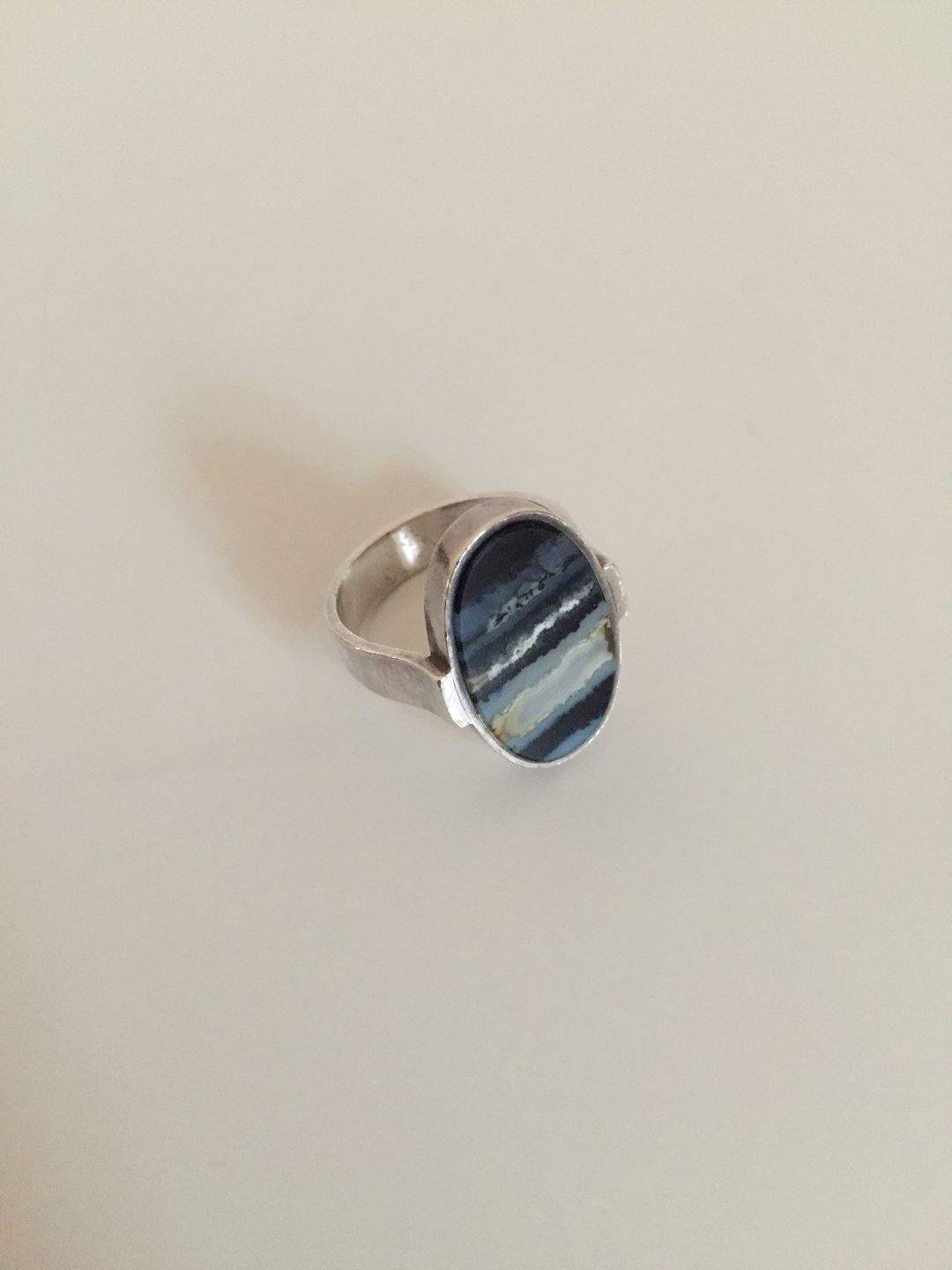 Georg Jensen Sterling Sølv Harald Nielsen Ring No 189 Prydet med Agat. Ringstørrelse 59.