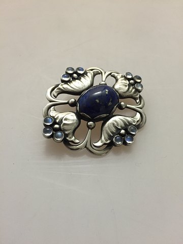Georg Jensen Sterling Sølv Broche med Lapis Lazuli og Månesten No 173. Fra efter 1945.