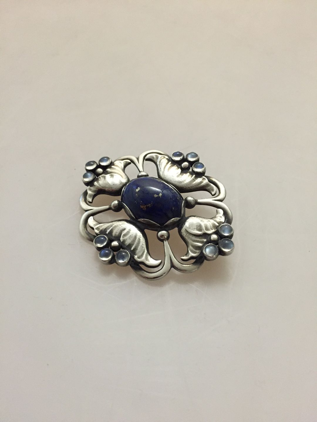 Georg Jensen Sterling Sølv Broche med Lapis Lazuli og Månesten No 173
