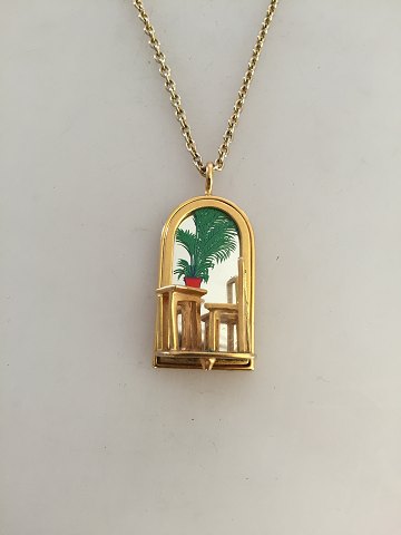 Georg Jensen Forgyldt Bronze "Sunshine & Night" Vedhæng med Cafe Stol og Spejl designet af Ole Bent Petersen. Fra 1981.