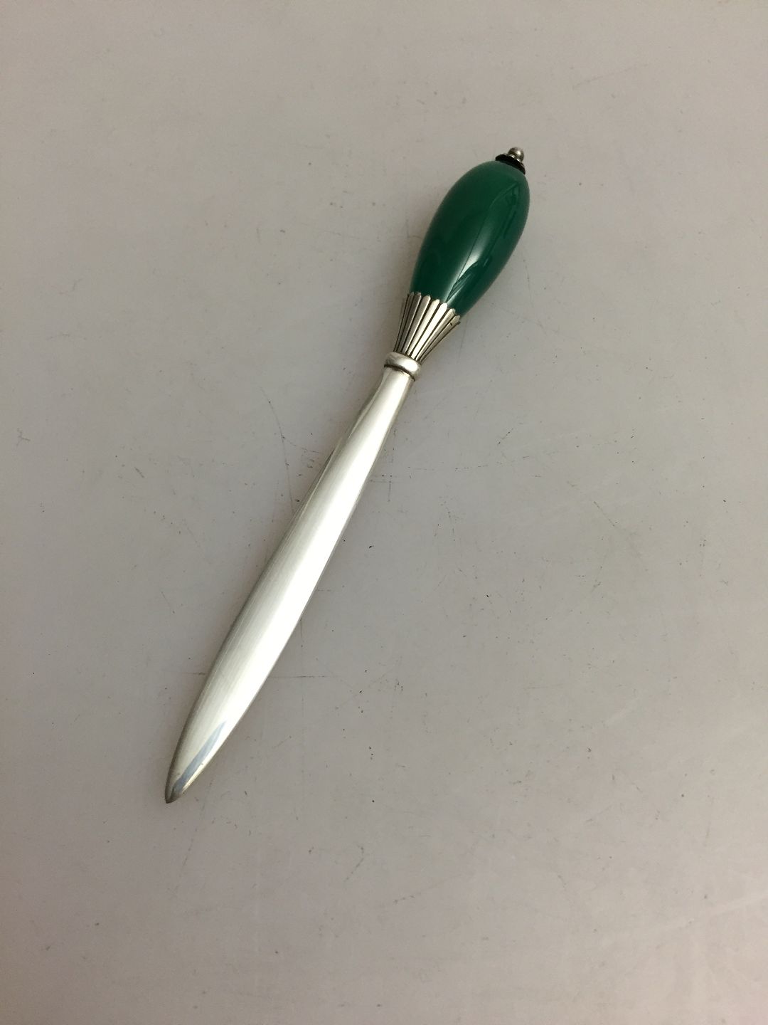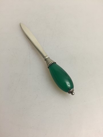 Georg Jensen Sterling Silver Letter Opener with Green Agate No 202. Designed by Oscar Gundlach Pedersen. Made with newer marks.