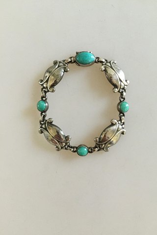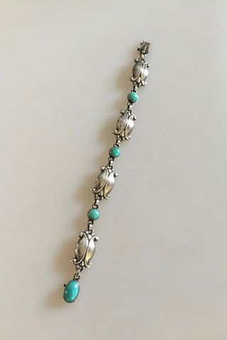 Georg Jensen Sterling Sølv Armbånd No 11 med Grønne Agater. Fra efter 1945. Med franske importstempler