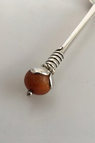 Mogens Ballin Silver Compote Spoon ornamented with Amber Stone. Measures 17.5 cm / 6 57/64". Weighs 44 g / 1.60 oz