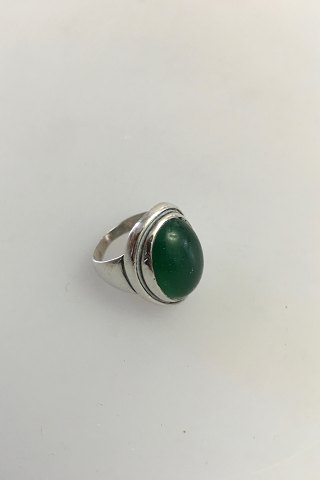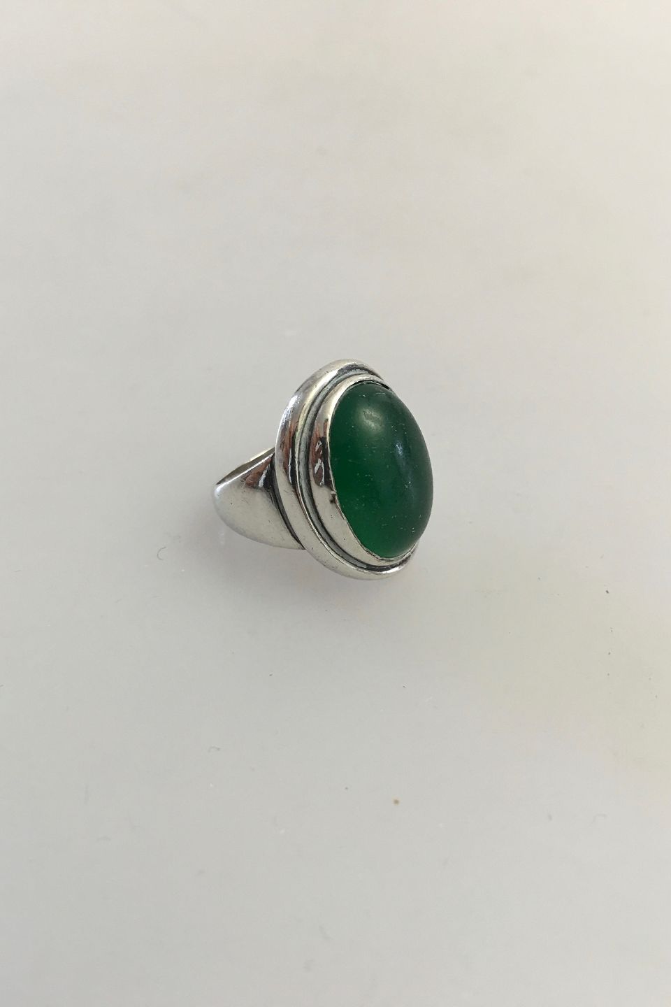 Georg Jensen Sterling Sølv Ring No 46A med Grøn Agat. Fra 1930-1945.