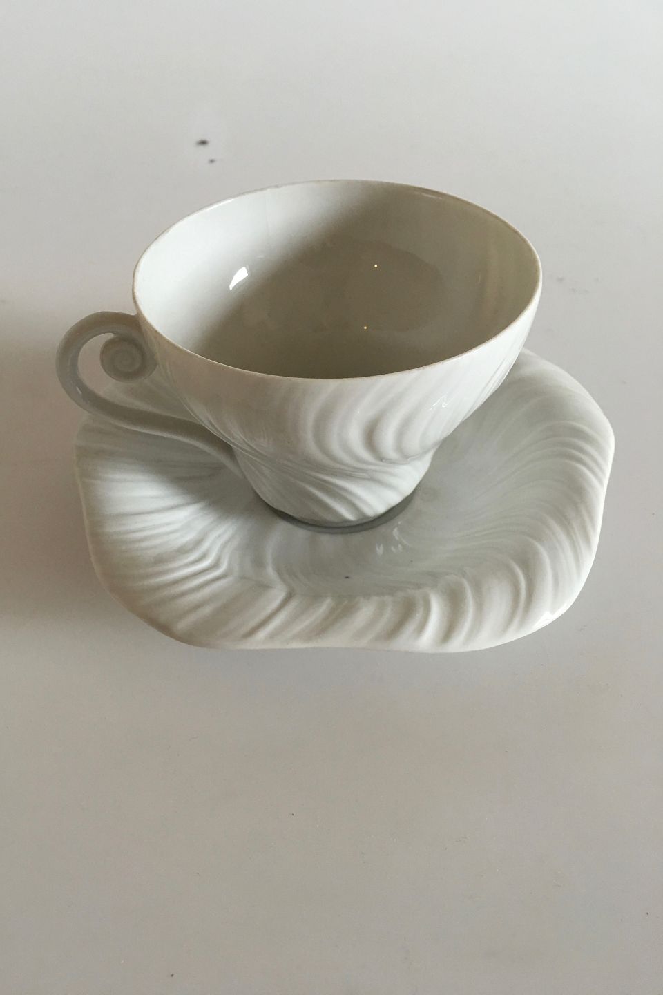 Royal Copenhagen Hvid Konkylie Tekop / Stor Kaffekop og Underkop No 14194. Kop 9 cm Ø. Designet af Arje Griegst