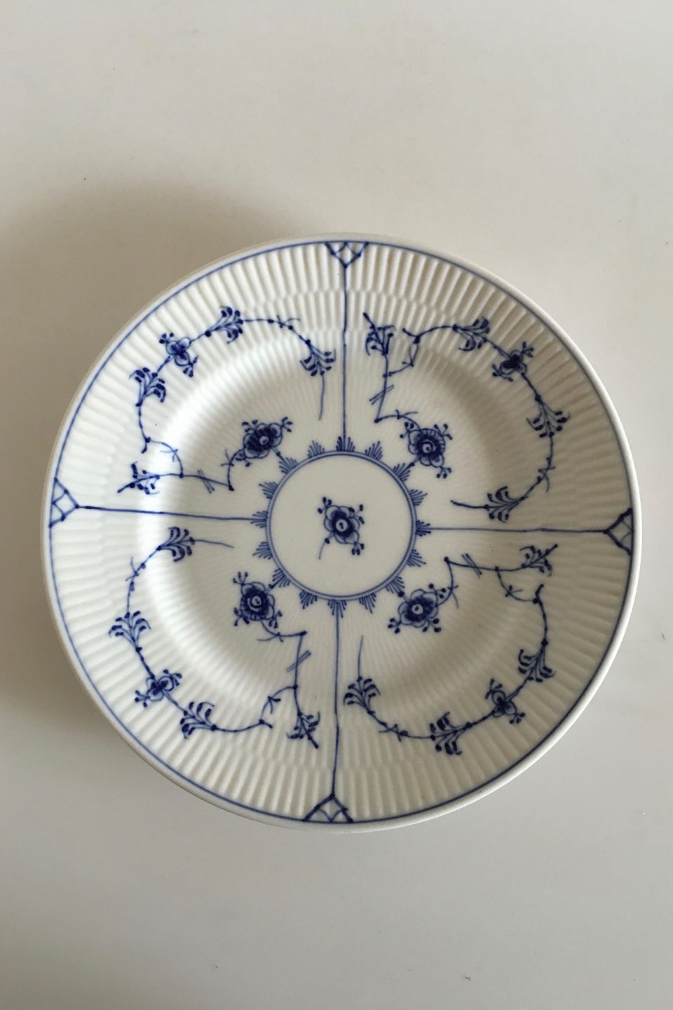 Royal Copenhagen Musselmalet Riflet Hotel Spisetallerken No 2244. Måler 24 cm ( 9 29/64 in. ) Har brugsslid